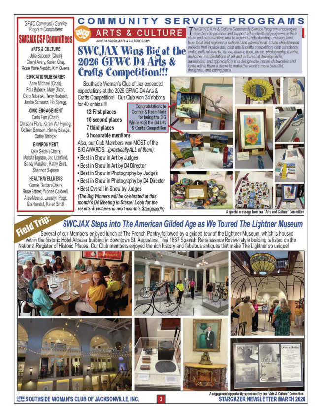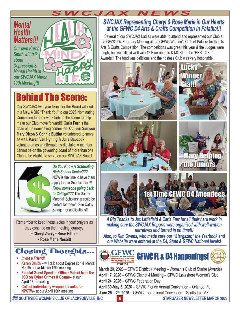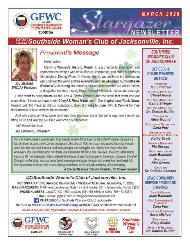 For more information or to reserve your spot, call Cathy (904-525-3890) or Jac (207-730-1659) or Kathy (760-473-8357).
