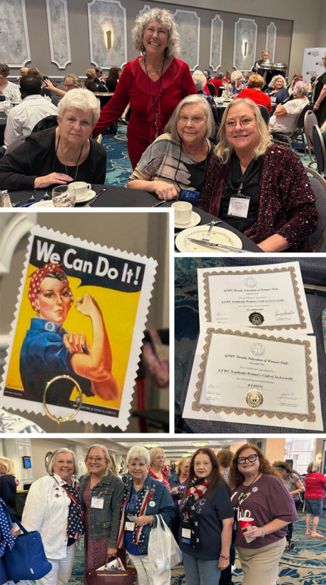 Nine SWCJAX Club members attended this year’s Convention in Orlando, April 21-23, 2023: Cheryl, Rose Marie, Jac, Julie, Cathy, Alice, Connie, Lauralyn & Kim. We had a great time, enjoyed each other’s company, ate “good” food, saw fantastic artwork & collected numerous awards!!! Plan on Attenting the GFWC Fall Boards in Orlando, September 22-24, 2023!!!