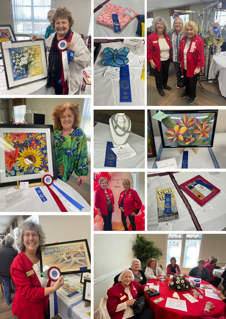 It was a chilly day for the GFWC FL D4 Arts & Crafts Competition @ the Woman’s Club of Starke. Our Club was pleased to earn 24 first places (meaning 24 items will go on to State competition in April in Orlando); 49 total ribbons with 55 entries. We also won some big awards: Group Project - Director’s Choice Overall; Rosemarie N. - Best in Crafts; Cheryl A.- Director’s Choice in Crafts; & Kim O.- Director’s Choice Arts. Everyone enjoyed the show! An extra special call out to Cheryl Avery, Rosemarie Nesbitt and Lauralyn Popp (our Group Project Lead)!!!!